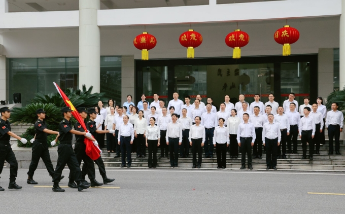 10月1日上午,市政协机关举行隆重的升国旗仪式,庆祝中华人民共和国成立76周年。市政协主席、党组书记黎作凤,市政协副主席何祚云、李运帷、张赟、高鸽子、林军华,市政协秘书长陈念军参加。