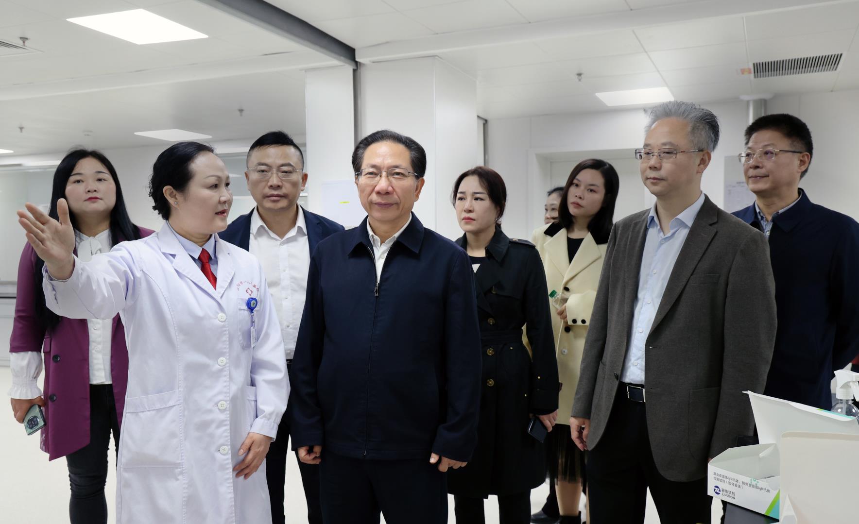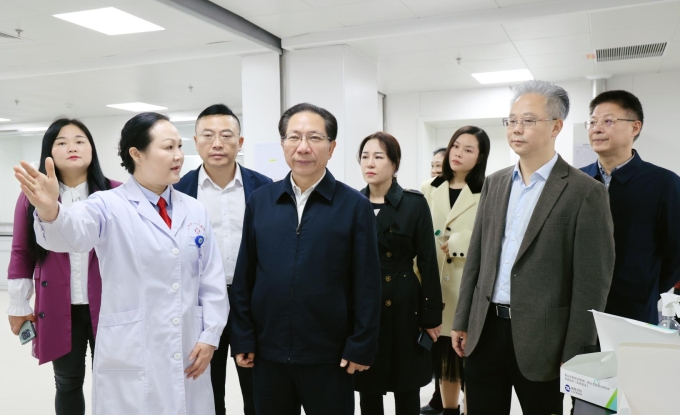 在岳阳市中心医院,视察组深入门诊大厅、临床检验中心、内镜中心、PET-CT中心与放疗中心、住院楼内分泌科等地,听取搬迁后运行情况和诊疗服务情况介绍。