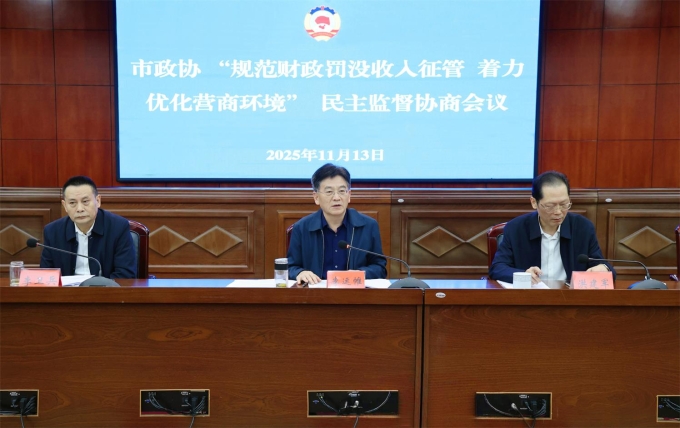 11月13日,市政协“规范财政罚没收入征管 着力优化营商环境”民主监督协商会议召开,市政协副主席李运帷、市政府副秘书长洪建军出席,市政协社会法制和民族宗教委员会主任李卫兵参加。