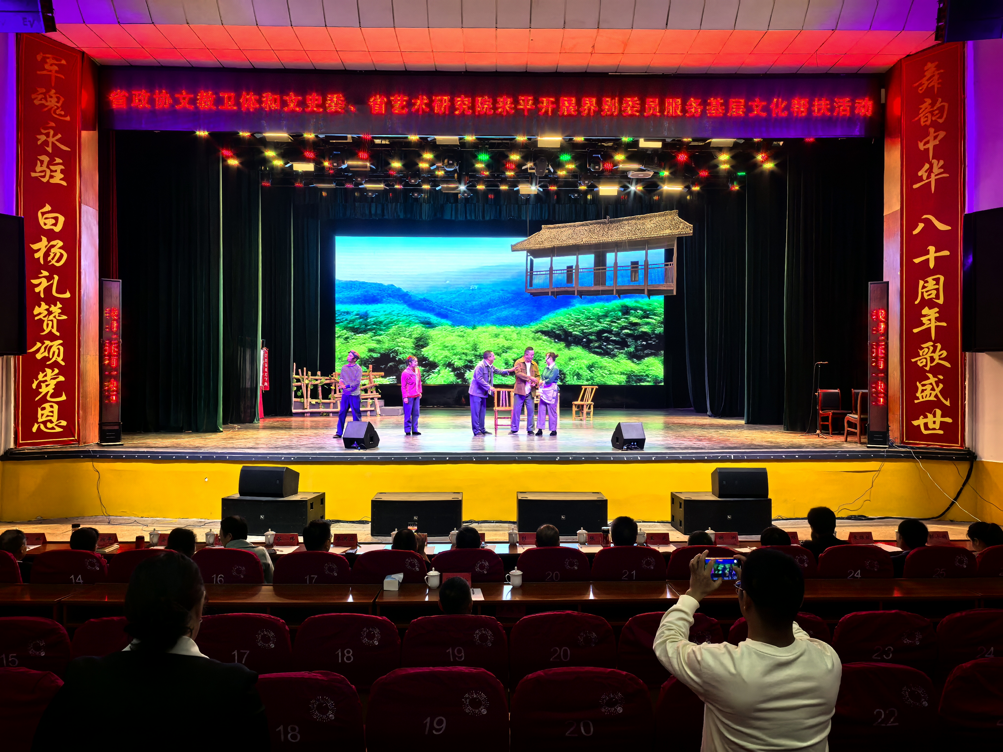 近日,由湖南省政协文教卫体和文史委联合省艺术研究院,省政协文艺界别委员工作室承办的人才服务基层文化帮扶活动在岳阳市平江县举行。省政协委员、省政协文艺界别委员工作室召集人、省政协文教卫体和文史委驻会副主任彭力,省政协委员、省艺术研究院党总支书记、院长、一级作曲邹清华,省政协常委、省文联副主席、省花鼓戏保护传承中心一级演员叶红,省政协委员、长沙瑞霖文化传播有限公司董事长、湖南散文学会副秘书长刘明,省政协文教卫体和文史委办公室主任王兆,省艺术研究院副院长谷玮,湖南省音乐家协会副主席、秘书长廖洪立,省艺术研究院剧目与非遗研究工作部一级演员何维,中南林业科技大学国家公园与旅游学院副教授、硕士研究生导师、智慧旅游系党支部书记谢冽参加活动。