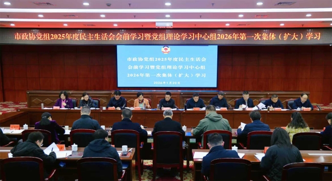 1月20日,市政协党组举行2025年度民主生活会会前学习暨党组理论学习中心组2026年第一次集体(扩大)学习,为高质量开好2025年度民主生活会打牢思想基础。市政协党组书记、主席汪涛主持,市政协党组副书记秧励,市政协党组成员、副主席李运帷、张赟、朱平波出席,市政协副主席何祚云、李文、高鸽子、李永波,市政协原秘书长、办公室一级调研员陈念军,市政协机关党组全体成员及非党组成员的专委会主任等列席。