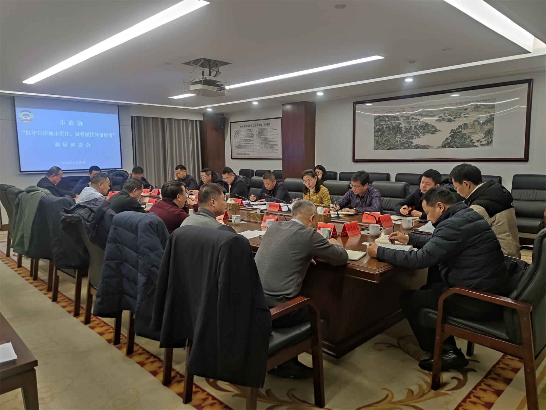 1月20日下午,市政协召开“扛牢口岸城市责任,做强做优外贸经济”调研座谈会。市政协副主席、党组成员朱平波出席并讲话。临港高新区、市发改委、市商务局、市口岸办、市投资促进局、岳阳海关等相关单位分管负责同志,市政协研究室、经科外事委相关人员及部分市政协委员参加会议。会议由市政协经科外事委主任李建军主持。