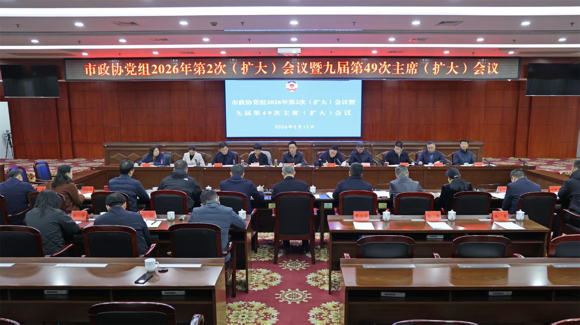 2月12日,市政协主席、党组书记汪涛主持召开市政协党组2026年第二次(扩大)会议暨九届第四十九次主席(扩大)会议,传达学习习近平总书记近期重要讲话精神,省政协会议精神,省、市纪委全会精神等,研究贯彻落实措施,并审议有关议题。市政协党组和主席会议成员秧励、何祚云、李文、李运帷、张赟、高鸽子、林军华、李永波、向科军出席。