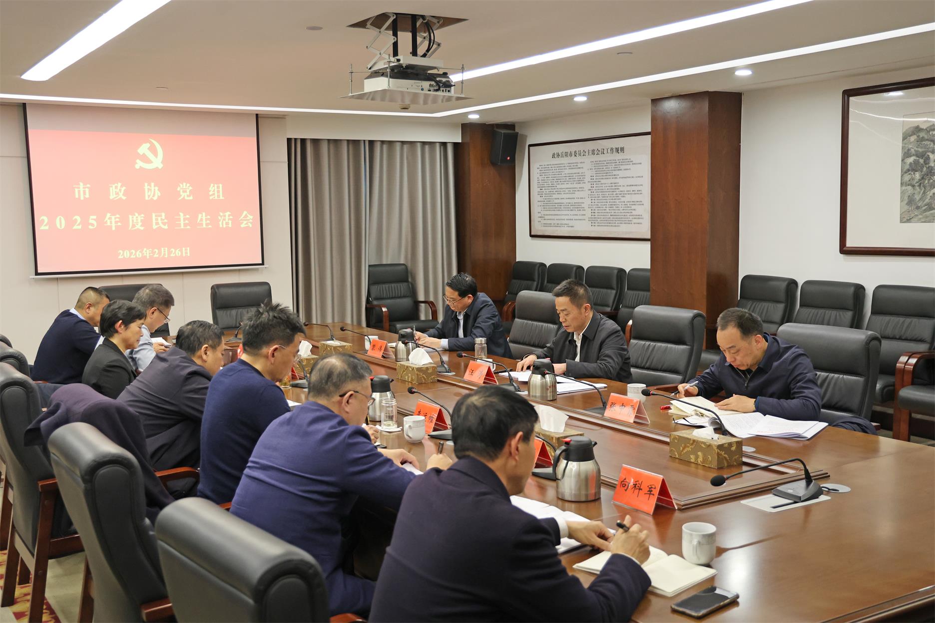 根据市委统一部署,2月26日,市政协党组召开2025年度民主生活会。市政协党组书记、主席汪涛主持并作总结讲话。市政协党组成员出席,非中共党员驻会副主席列席,市纪委监委、市委组织部有关同志到会指导。