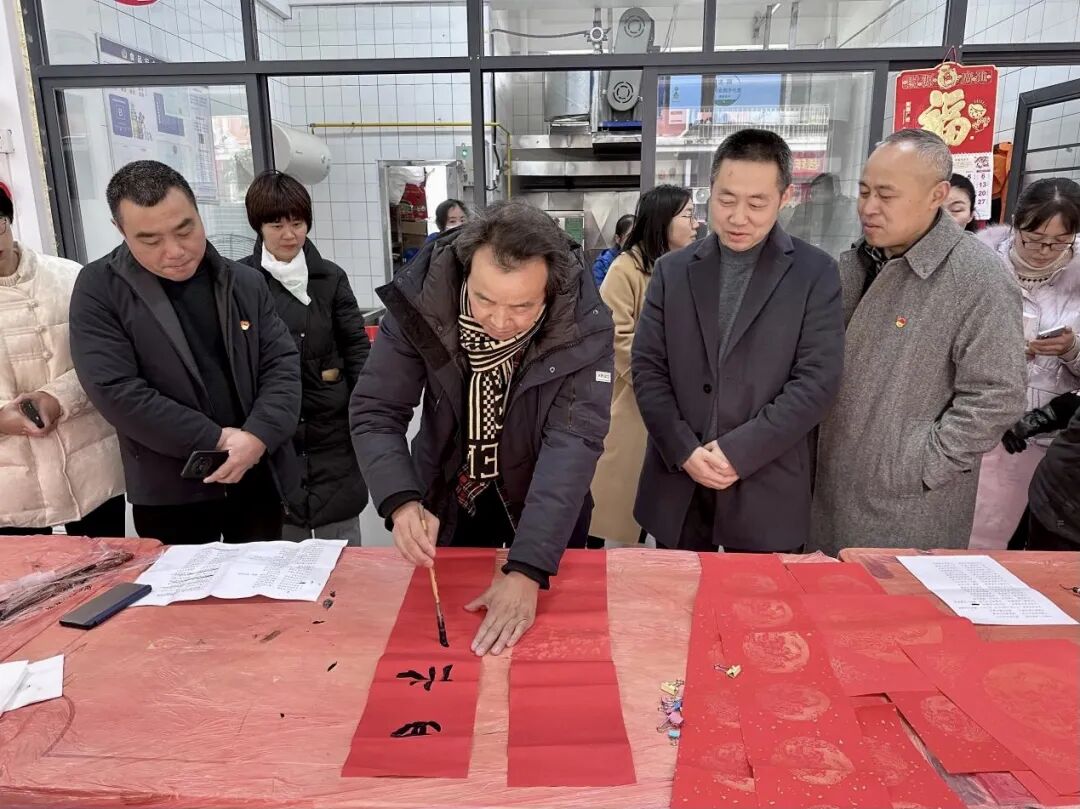 为传承和弘扬中华优秀传统文化,丰富群众的精神文化生活,营造喜庆、欢乐、祥和的节日氛围,驻室委员与市书法家协会的书法家们齐聚银东社区益老食堂。一幅幅红色春联在桌上铺开,书法家们挥洒笔墨,笔力雄厚,满满的祝福跃然纸上。闻讯而来的村民络绎不绝,大家拿着手写的春联,脸上洋溢着喜悦的笑容。