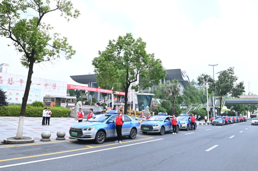 高考前丽华出租车公司在内部发布了“爱心送考”行动倡议,要求在出租车的顶灯循环播放“爱心送考情系莘莘学子,助人为乐争当最美司机”等宣传标语,号召出租车驾驶员积极参与“爱心送考”的公益行动。公司还专门挑选了一批责任心强、驾驶经验丰富的驾驶员,组成爱心志愿者车队,在每台出租车前挡风玻璃右侧张贴“2024年爱心送考”标志,全力服务于今年的“爱心送考”。