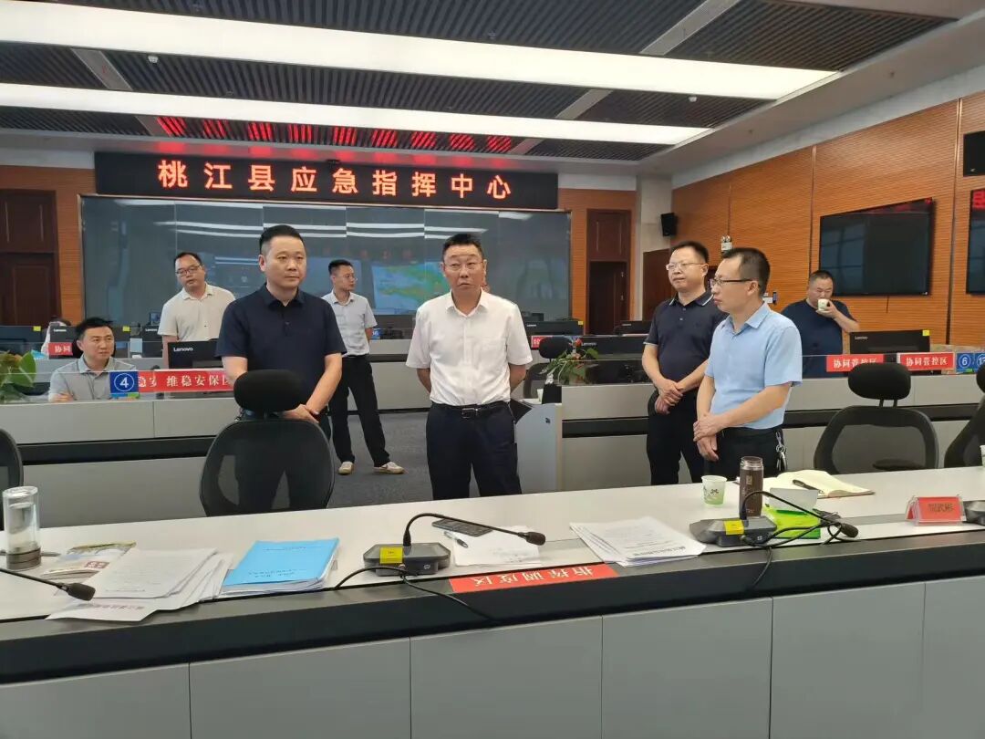 在桃江县应急指挥中心,邓象庭认真听取对水文、地质灾害避险、值班值守、防汛物资保障等情况汇报。他强调,要深刻认识防汛抗灾工作的极端重要性和复杂性,进一步修订完善各类预案,加强隐患排查整治,强化应急抢险物资储备,加大对重点部位的巡查检查力度,全面压紧压实责任,切实抓好相关措施落实,保障人民群众生命财产安全。