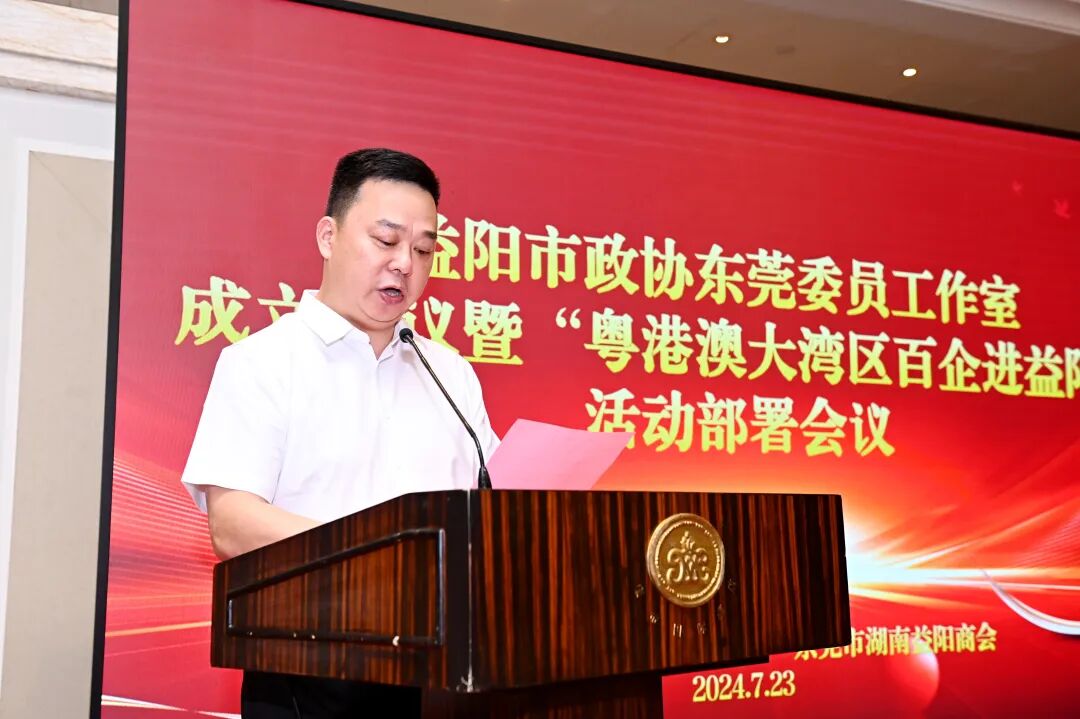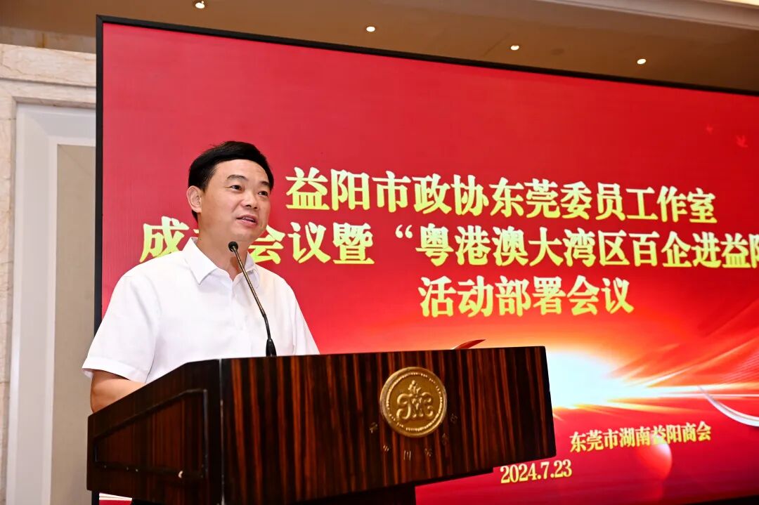 7月23日,市政协广东东莞委员工作室成立暨“粤港澳大湾区百企进益阳”活动部署会议在东莞举行,市政协主席胡立安出席并讲话。