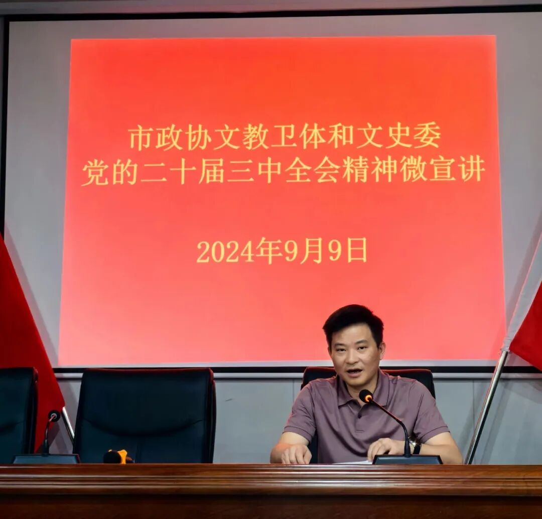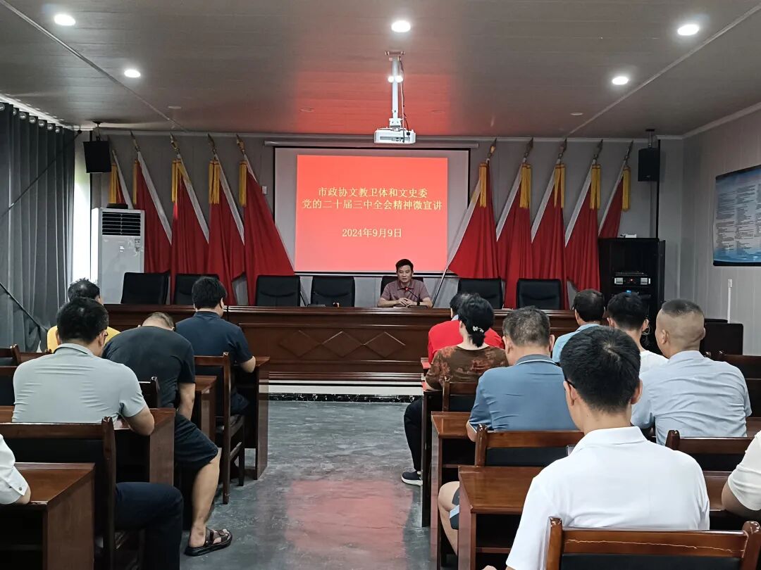 9月9日,市政协副主席陶汉文深入沅江市琼湖街道保民村开展党的二十届三中全会精神宣讲。市政协文教卫体和文史委委员工作室部分委员、村支两委代表、驻村乡村振兴工作队队员以及村民代表参加。