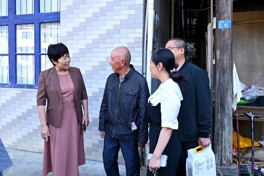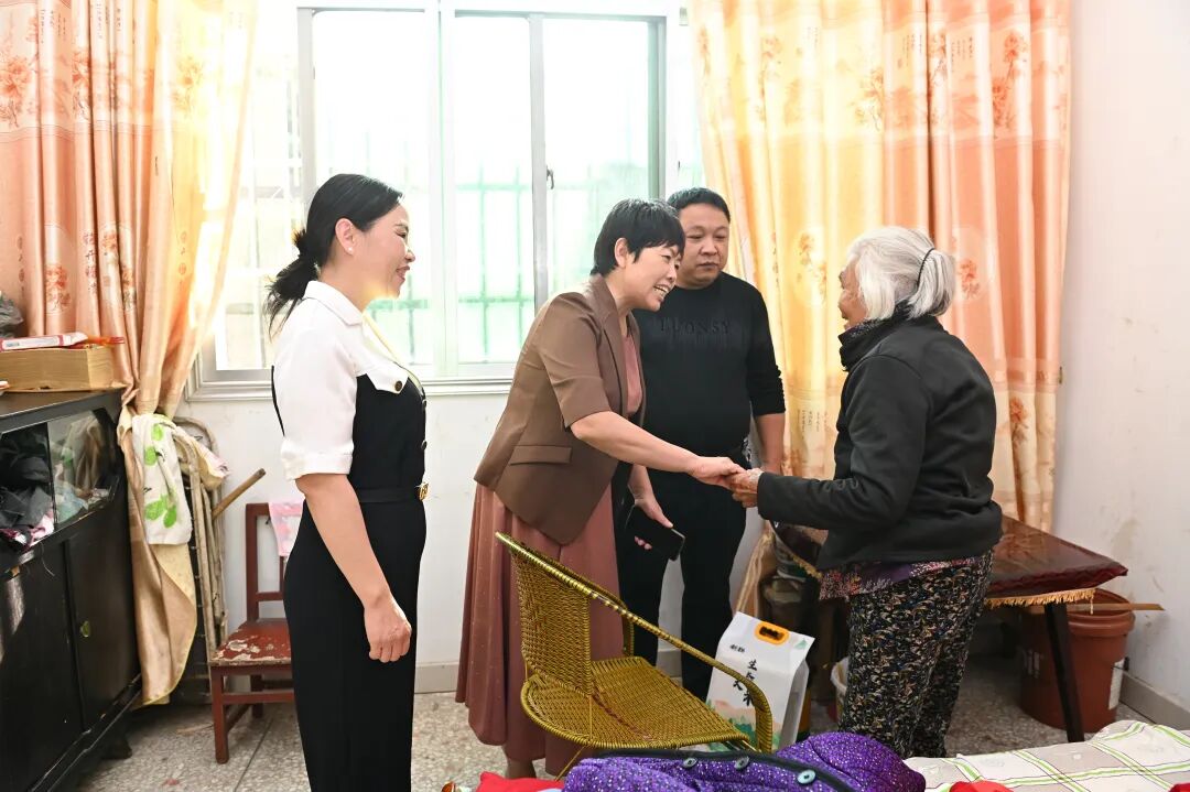李赛与政协常委周金泉、滔溪镇工作人员、驻村工作队等一行人走进新联村80岁以上老人家中,为他们送去温暖与关爱。“郭嗲嗲,您八十多岁了,耳聪目明,身体棒棒的。明天是重阳节,我代表市政协祝您健康长寿,幸福美满。”李赛握着郭颜愚老人的手说。