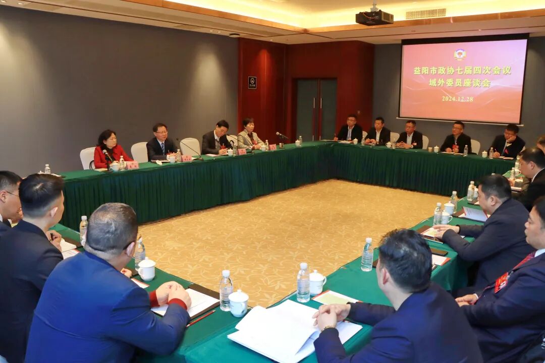 12月27日,益阳市政协七届四次会议期间召开域外委员座谈会,市政协党组书记、主席胡立安出席并讲话,市政协党组成员、副主席李晓跃主持,市政协副主席、工商联主席戴朝,市政协党组成员、秘书长李赛出席,参加市政协七届四次会议的域外委员参加会议。