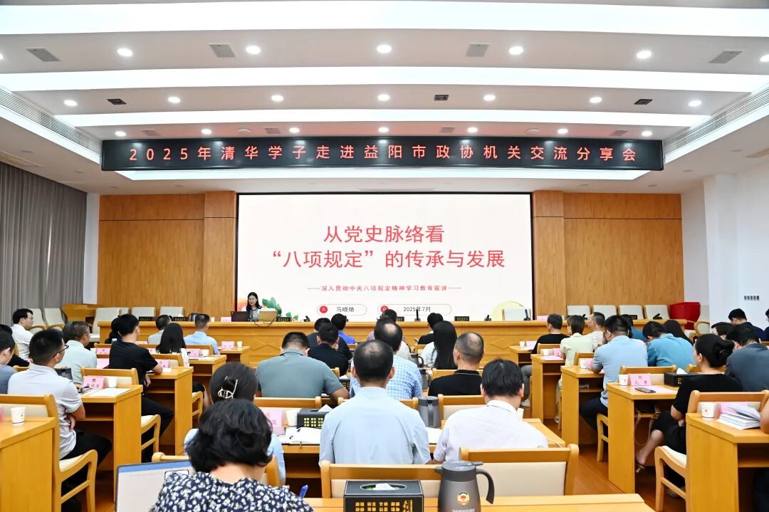 7月11日,来自清华大学的11名学子走进市政协机关,开展党课交流,为政协机关的党建工作注入青春智慧与理论活力。市政协党组副书记、副主席陶汉文,党组成员、副主席李晓跃,党组成员、秘书长李赛出席活动。 清华学子分别以《从党史脉络看八项规定的传承与发展》和《机遇与挑战:新质生产力的发展与党员使命》为主题,与政协机关党员干部进行了深入交流, 《从党史脉络看八项规定的传承与发展》授课聚焦党的作风建设,沿着党史脉络,梳理了从延安时期的“三大纪律八项注意”到新时代“八项规定”的传承逻辑,深刻阐释了作风建设是我们党历经百年风雨而愈发强大的重要法宝,八项规定是对党的优良传统的继承与发展,彰显了我们党“打铁必须自身硬”的坚定决心。 在《机遇与挑战:新质生产力的发展与党员使命》授课中,清华学子从习近平总书记的重要论述与新质生产力的内涵切入,深刻剖析了这一理念的时代意义,同时立足益阳实践,展示与分析了新质生产力在益阳落地生根的成果与潜力。 政协机关党员干部表示,将以党史为镜,把八项规定精神内化于心、外化于行,在日常履职、服务群众等环节中始终保持务实清廉的作风,以良好党风政风引领各项工作高质量发展。 此次授课交流既是高校与政协党建工作的一次创新联动,更是青年理论力量与基层党建实践的深度融合。市政协将以此次活动为契机,持续深化中央八项规定精神学习教育,推动党员干部在把握时代机遇中勇担使命,在传承优良作风中砥砺前行,为政协工作高质量发展筑牢思想根基。
