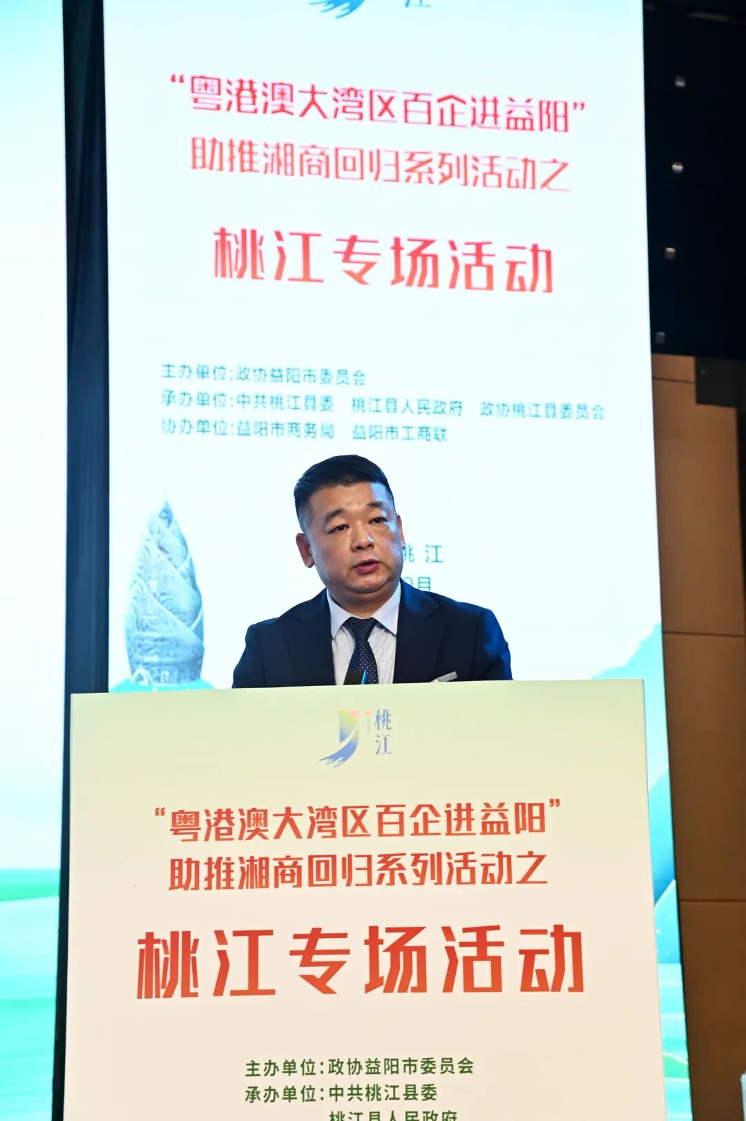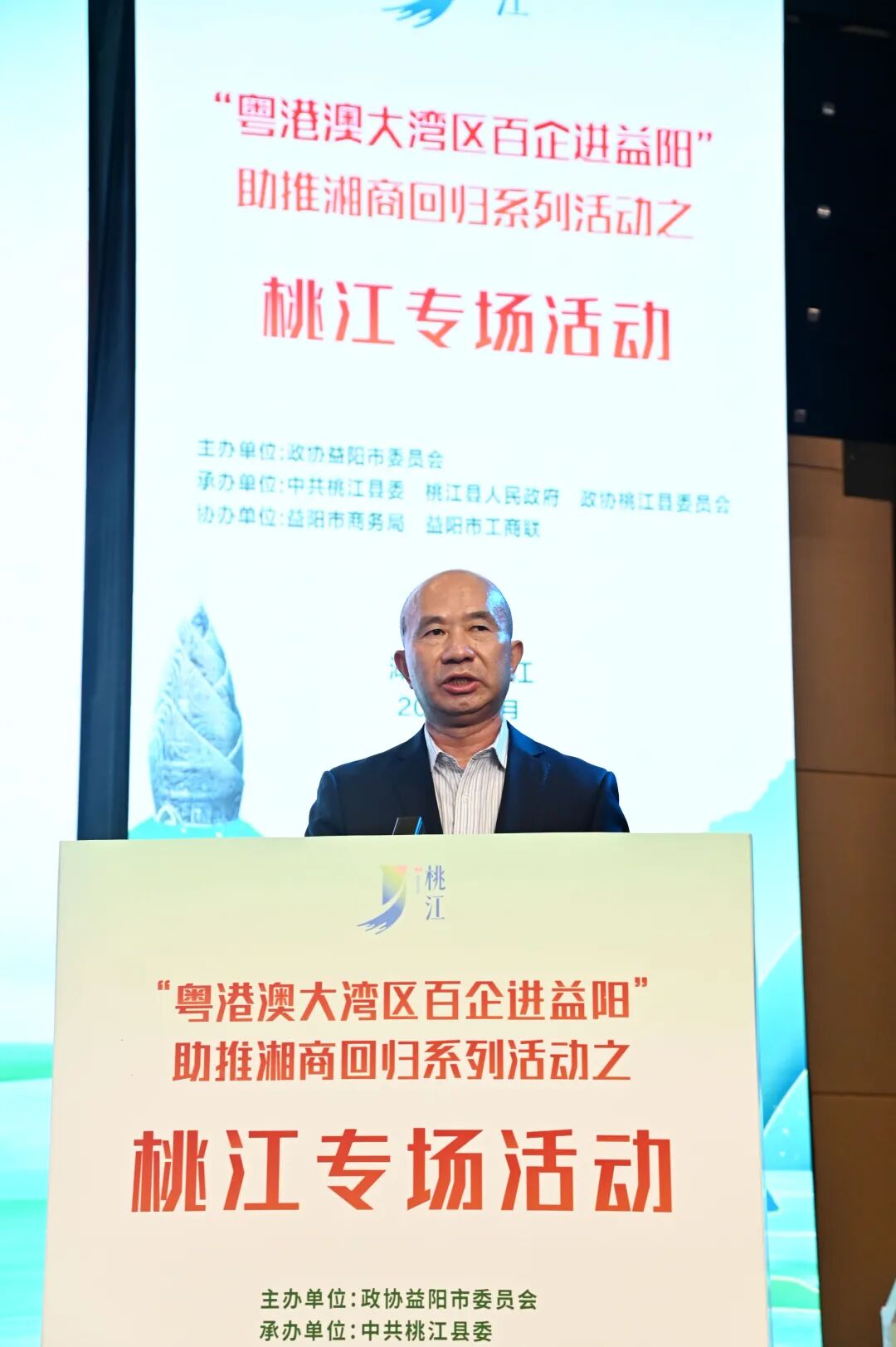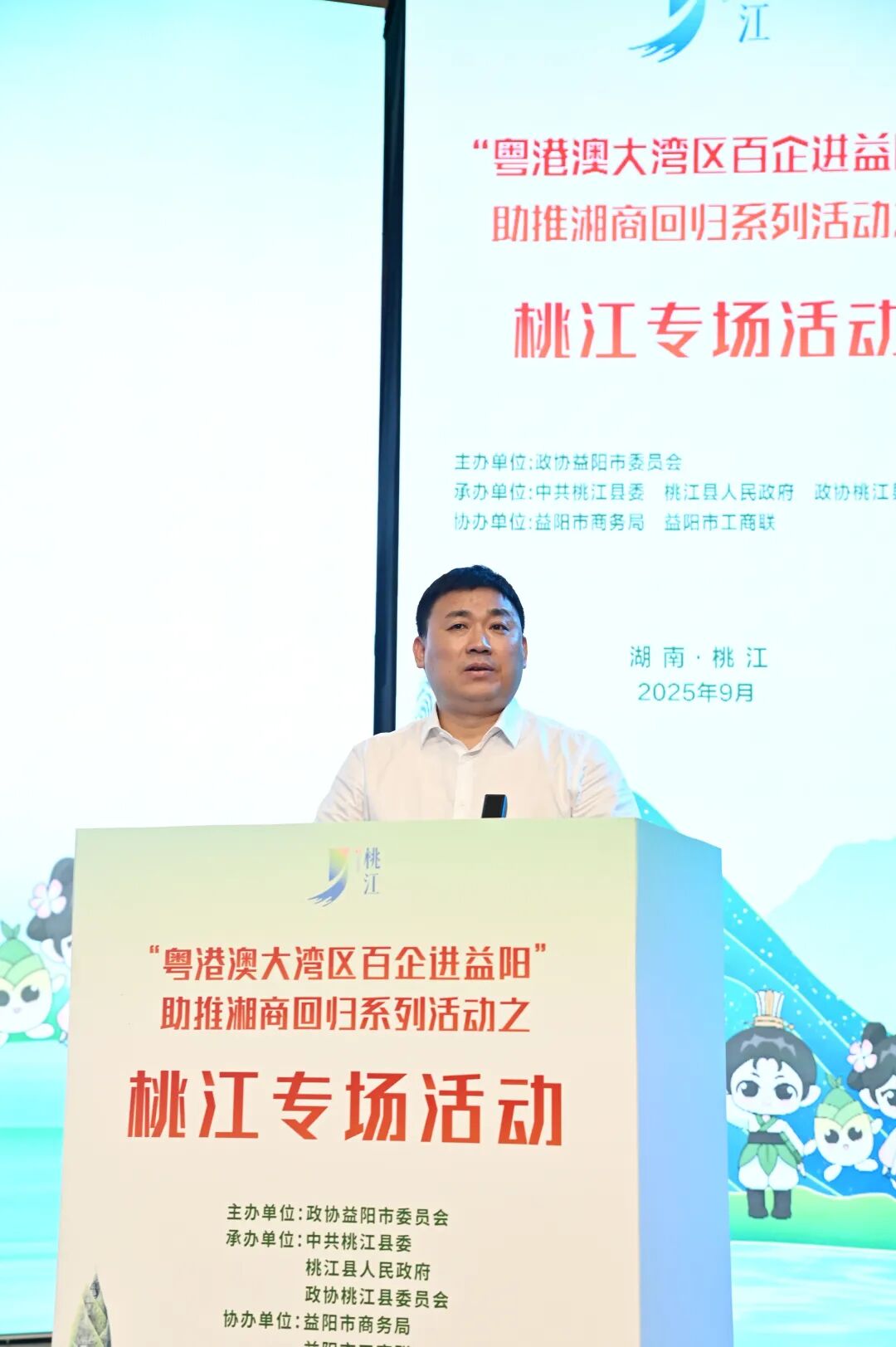 9月30日,由市政协主办的“粤港澳大湾区百企进益阳”助推湘商回归系列活动之桃江专场活动举行。市政协主席胡立安出席并讲话。 市委常委、常务副市长刘勇会,市委常委、副市长朱春光,市政协副主席陶汉文、李晓跃、向荣,市政协秘书长李赛参加。 推介会上,桃江宣传片与特色节目全方位展现了桃江的资源禀赋与发展活力;相关负责同志介绍了桃江近年来的发展成就与营商环境优势,并就先进装备制造、竹旅文体康产业链及重点项目展开推介,详细阐述了当地投资环境与发展机遇;4位域外政协委员及乡友代表先后发言,结合自身经历与合作愿景,分享了对家乡产业潜力的深刻洞察。 胡立安指出,此次活动是市委、市政府推动区域经济协作、深化对外开放的重大举措,也是市政协贯彻落实省政协“1453”履职总要求,推动湘商回归,助推益阳高质量发展的重要抓手。政协要当好一个用心的“牵线红娘”,将活动打造成“相亲会”式交流平台,促成包括湘商在内的各界人士回乡投资兴业,助力两地双向奔赴、合作共赢;要当好一个暖心的“服务小二”,持续关注企业需求、跟踪项目进展、紧盯政策落地,提供“台下”“事前事后”的闭环服务,以企业的成功为共同荣耀;要当好一个舒心的“信赖娘家”,不仅关注项目签约的“纸面成果”,更看重情感交融的“心里温度”,将政协从“委员之家”延伸为“湘商益商之家”“企业家之家”。 这是继29日参会嘉宾考察桃江高新技术企业后的又一重要环节,整场活动的成功举办,不仅是一次乡情的凝聚、一次成果的展示,更是一次迈向未来的新起点。这是继2024年10月“粤港澳大湾区百企进益阳”助推湘商回归系列活动高新区专场后的第二次区域专场活动,标志着“粤港澳大湾区百企进益阳”品牌持续走深走实。市政协将持续擦亮这一活动品牌,将其作为常态化、机制化的工作抓手,不断拓展“湘商回归”的深度与广度。随着“湘商回归”工程的持续推进,益阳必将在高质量发展的道路上步履铿锵,谱写合作共赢的新篇章。
