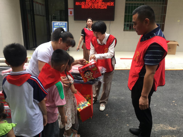 6月1日,赫山区政协组织机关党员干部及其子女到竹山社区开展“强国复兴有我·2022年益阳市关爱留守儿童”志愿服务活动,为孩子们送去节日祝福。