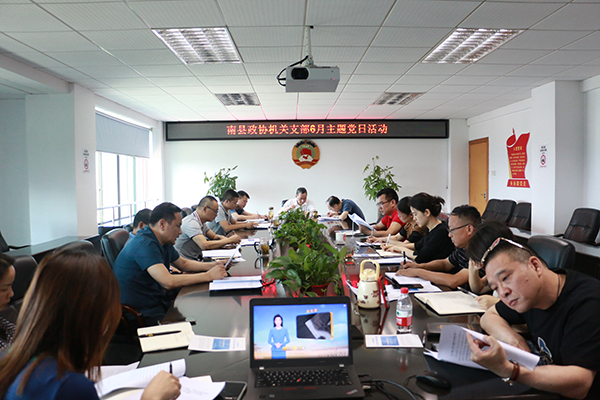 6月14日,县政协机关支部开展6月份主题党日活动。会议由县政协机关支部副书记彭伟主持。县政协全体党员干部参加会议。