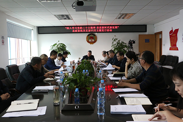 11月9日,县政协机关支部开展11月份主题党日活动。会议由县政协机关支部书记张小明主持。县政协全体党员干部参加会议。