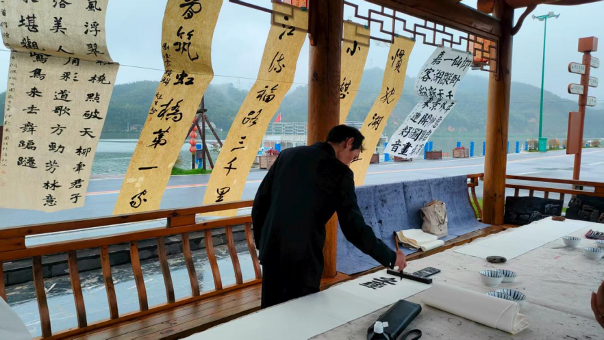经过将近两个小时的挥毫,书画家们创作了50余幅对联,5幅刻画。所创作的书法经后期制作,将全部用于修山小洱海沿江商户与农户的楹联展示,承载了文化与价值,增强客源互动与情感连接,真正实现诗画山水与文化深度交融。