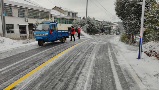 降雪的第一天朱柯委员就带领工作室成员协助镇消防队、镇执法队在重点路段、桥面抛洒工业盐防止道路结冰,消防车、拖拉机齐上阵,大家挥舞铁锹,加班加点直至深夜。第二天朱柯委员又带领工作室成员加入到了铲雪除冰的队伍中,在凛冽的寒风中,即使脸和手冻得通红,大家也不叫苦畏难,经过一上午的努力,百禄桥镇主干道的冰雪基本清理完成。随后,朱柯委员又带领工作室成员下村入户巡查安全隐患,对家里有棚架、钢架、木架等的群众重点提醒,嘱咐他们加固并时刻注意,谨防垮塌危害,做好自我防护。