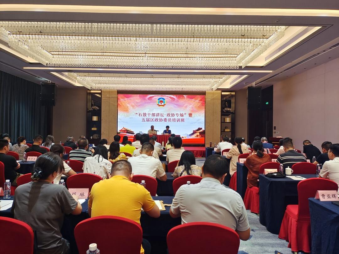 烈日炎炎,挡不住委员学习的脚步。8月23日,“石鼓干部讲坛·政协专场”暨五届区政协委员培训班开班。市政协副主席、石鼓区委书记颜和平出席开班仪式,并以《宏观经济发展环境和全区发展重点》为题开讲第一课,区政协党组书记、主席周文源主持。