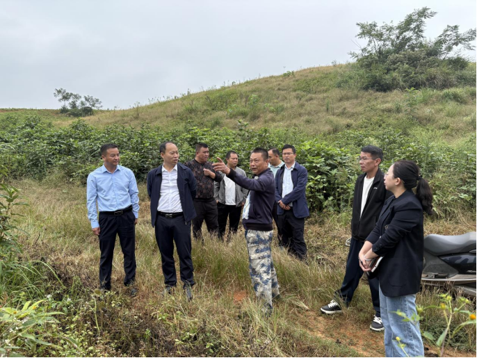 调研组首先来到黄田铺镇舜帝庙村中药材种植基地,走进田间地头与基地负责人、种植户亲切交流,详细询问中药材的品种选择、种植规模、生长周期、田间管理技术以及市场销售、经济效益等情况。在一株株长势喜人的中药材旁,调研组仔细查看作物生长状态,了解种植过程中遇到的技术难题和政策需求。得知基地目前已种植黄精、白芨、五指毛桃等多种中药材且部分品种已实现稳定产销,调研组给予充分肯定,并鼓励基地进一步扩大优质品种种植面积,加强与科研机构合作,提升中药材品质和产量。