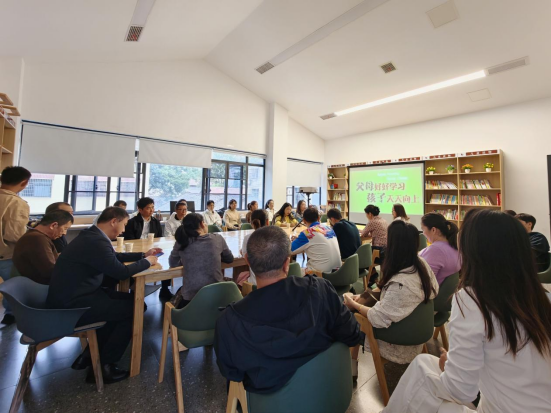 阳光透过图书室的玻璃幕墙,在认真记录的笔记本上跳跃。室内既有两鬓发白的老一辈父母,也有新生代年轻父母。当杨祝群讲到“家庭教育是人生教育的起点和基础,是孩子人生的第一堂课。家庭教育不是单向灌输,而是双向奔赴的成长”时,现场响起一片会心的笑声。