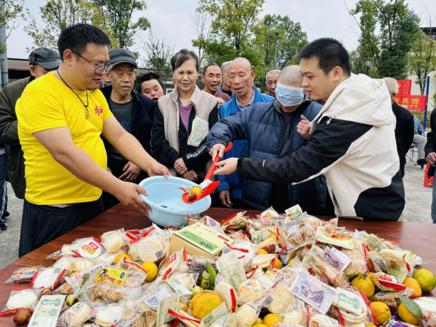 活动中,委员们带着精心准备的节目依次登台,赢得老人们阵阵掌声,为现场增添了更多活力与温情。李平荣委员(牛扣哥)为老年朋友们表演了“零陵渔鼓”,还与老年人一起玩猜拳、蒙眼铲物等游戏,将现场氛围推向高潮。李平荣说:“作为一名政协委员,孝爱文化和孝文化产品水口山牛扣的传承人,有责任把孝文化发扬光大,也希望有更多的年轻人一起加入到弘扬孝老敬老的传统文化中来,让老人家老有所养,老有所乐。”