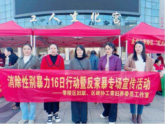 11月28日上午,零陵区政协工青妇界委员工作室联合区妇联在安康广场举办了消除性别暴力16日行动暨反家暴专场宣传活动。消除性别暴力“16日行动”是由联合国妇女署发起,联合全世界各地的个人和组织来呼吁制止、预防和消除对女性和女童的暴力的行动,指从每年11月25日开始,一直到12月10日国际人权日结束的16天。