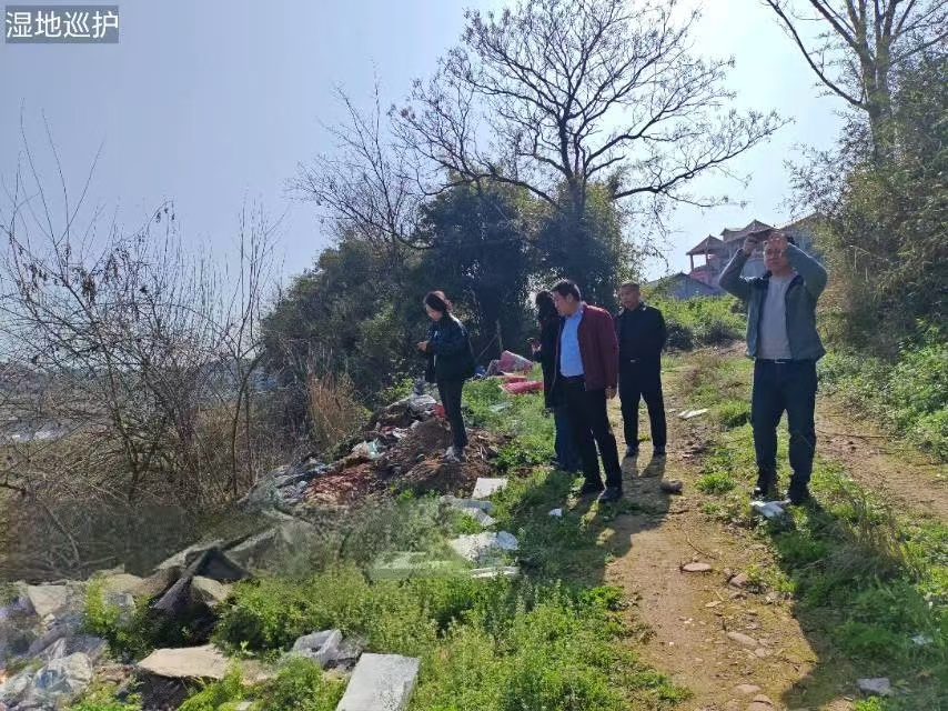 调研组深入潇水湿地公园核心区域,委员们与执法、管护人员一道,重点查看湿地水质状况、岸线管理及垃圾清理情况,细致排查生态保护薄弱环节。调研中发现,随着近年来保护力度加大,潇水湿地整体生态环境持续改善,但在潇水、贤水部分区域,仍存在倾倒建筑、生活、生产垃圾问题,影响岸线风貌与湿地生态。