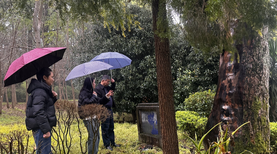 调研组一行深入景区林间,先后查看多株古树的生长态势、养护管理及保护设施情况,详细查看古树树龄、生长环境、病虫害风险及日常管护中的难点问题。现场,相关人员围绕提案核心建议,结合东山景区实际,对照香山公园在古树名木建档立卡、智慧监测、精细化养护、法治保障等方面的成熟经验,深入探讨可落地、可复制的保护模式,为东山古树保护“把脉开方”。