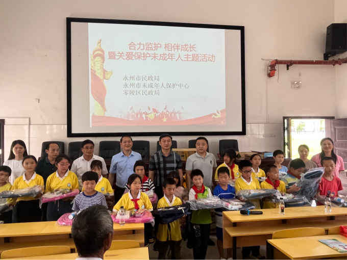 为进一步加强农村留守儿童关爱保护工作,提高农村留守儿童的自我保护意识,营造“关爱留守儿童”的良好社会氛围。6月27日上午,石山脚街道委员工作室联合永州市民政局、永州市未成年人保护中心、零陵区民政局在零陵区五里堆小学组织开展“合力监护 相伴成长”暨关爱保护未成年人主题活动,为该校的留守儿童送来书包、文具、彩笔以及油、米、牛奶等学习和生活用品。