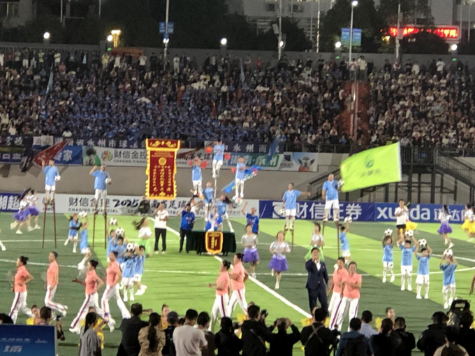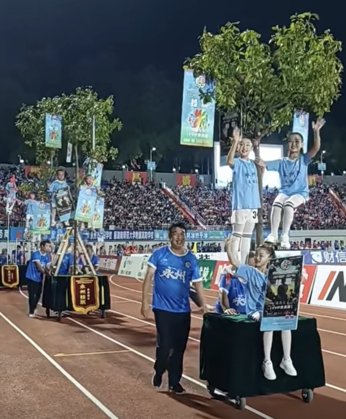 “湘超”永州主场赛事引爆全城,文体盛宴点亮足球之夜,省级非遗—“黄阳司扎故事”炸场“湘超”永州主场,第一场开场文艺节目《永冲锋》,第二场歌舞《永州挂票》,编排新颖,独具魅力,将全网爆红“树上挂票”从热搜走进现实、活化绽放。传统民俗与现代体育交织碰撞,千年技艺与足球热梗同频共振,每一次亮相都引来全场沸腾,文化与热度直接拉满!
