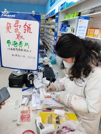 彭艳艳告诉记者,昨天上午,她看到很多人在微信朋友圈发消息说,福元堂大药房向社会免费发放退烧药布洛芬,每人可以领取10片,她就赶紧去领了。因为之前问过很多家药店,都买不到布洛芬,现在能免费领,她很感动,觉得这家药房有担当。