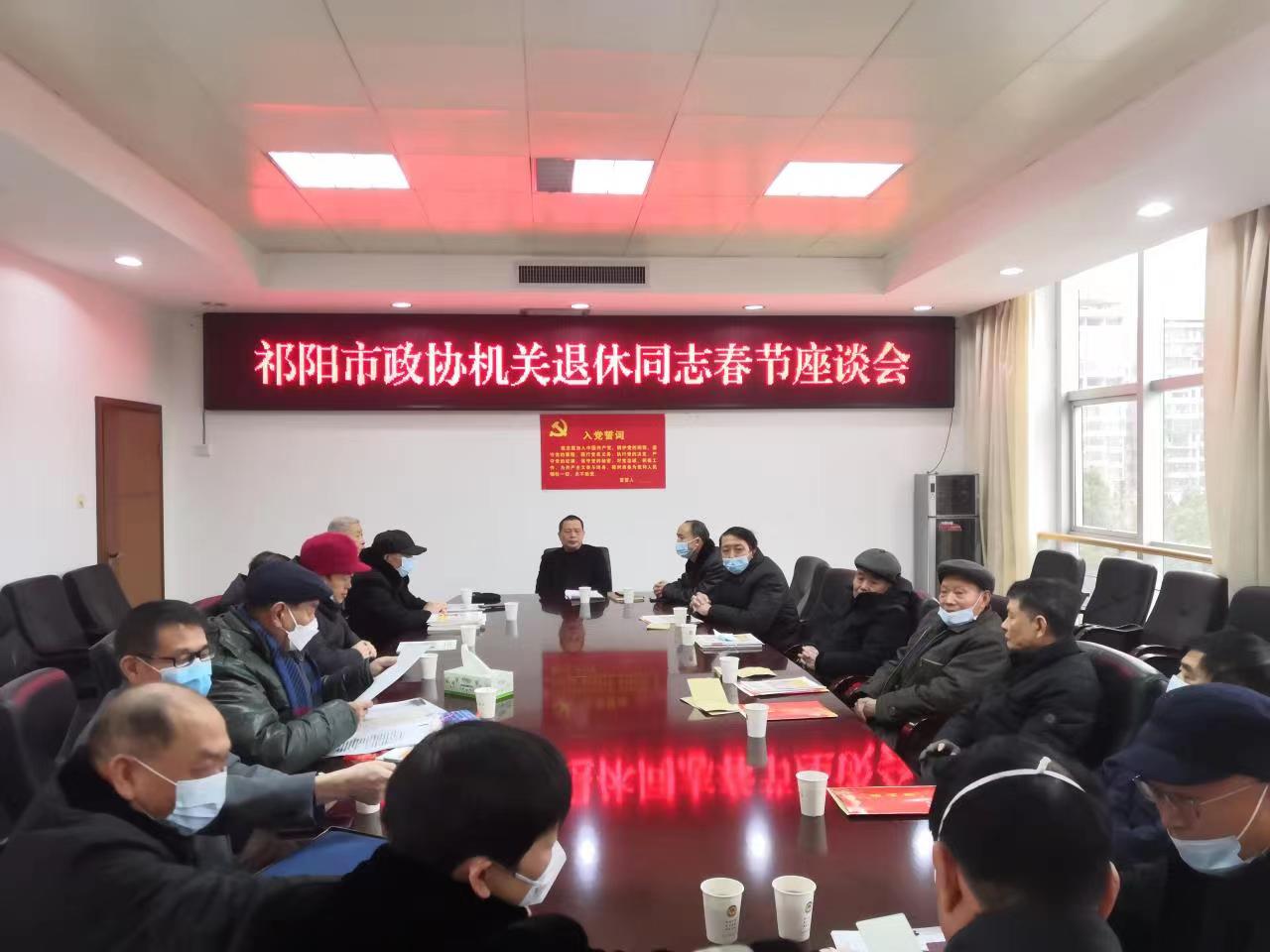 1月16日上午,祁阳市政协召开2023年机关退休同志春节座谈会,盘点收获、展望未来、共贺新春。市政协党组书记、主席彭国锋出席会议并讲话,市政协党组成员、秘书长张松柏主持座谈会。