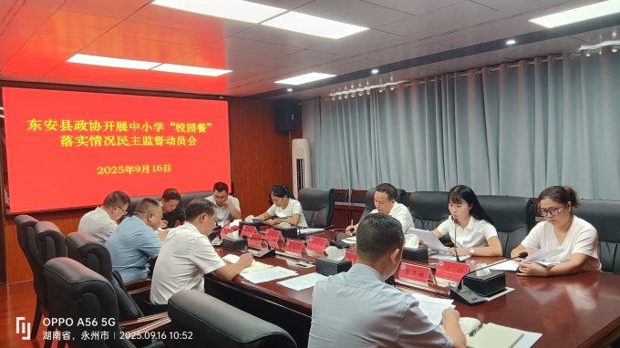 9月16日,东安县政协召开专题动员会,就开展全县中小学校园餐落实情况专项民主监督工作进行安排部署。县政协副主席周云喜出席会议并作讲话。县政协民主监督小组全体成员、县教育局相关负责人参加会议。