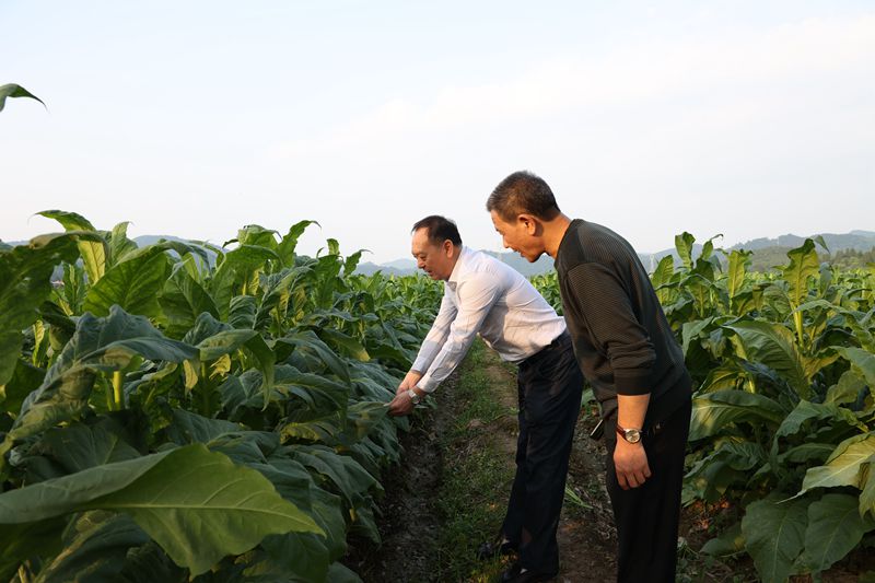目前烤烟正处于生长旺盛期,走在乡镇田间地头,只见连片的烤烟郁郁葱葱,长势喜人。每到一处,李劲涛都实地察看烤烟生长态势,向各乡镇负责人了解烤烟生产情况和烤房建设情况,并和烟农亲切交谈,向烟农详细了解烤烟的长势及需要解决的问题等。