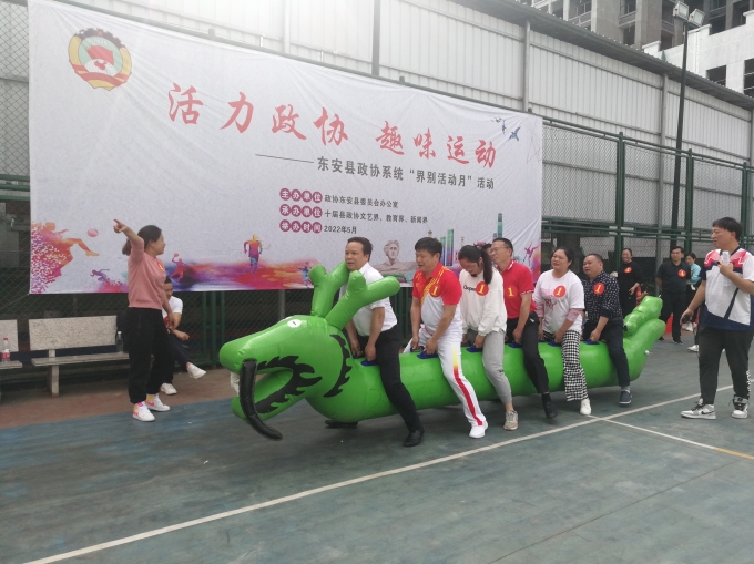 “加油加油!稳住稳住!……”5月17日,东安县体育坪广场充满欢声笑语,县政协办干部职工和新闻界、教育界、文艺界委员正兴致勃勃地参加趣味运动会比赛项目。