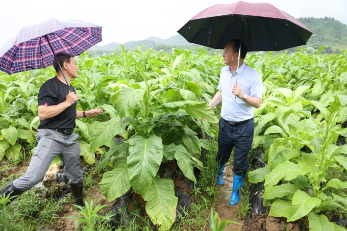 5月30日,东安县政协主席李劲涛深入横塘、芦洪市等乡镇督导烤烟生产工作。县烤烟办相关负责人陪同。