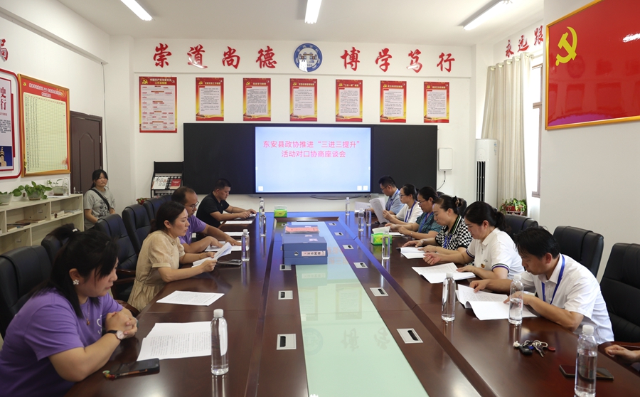 8月4日上午,东安县政协就推进全县中小学“三进三提升”活动,深入县崇德学校开展对口协商视察调研。县政协副主席李瑞霞和部分县政协委员参加座谈协商。