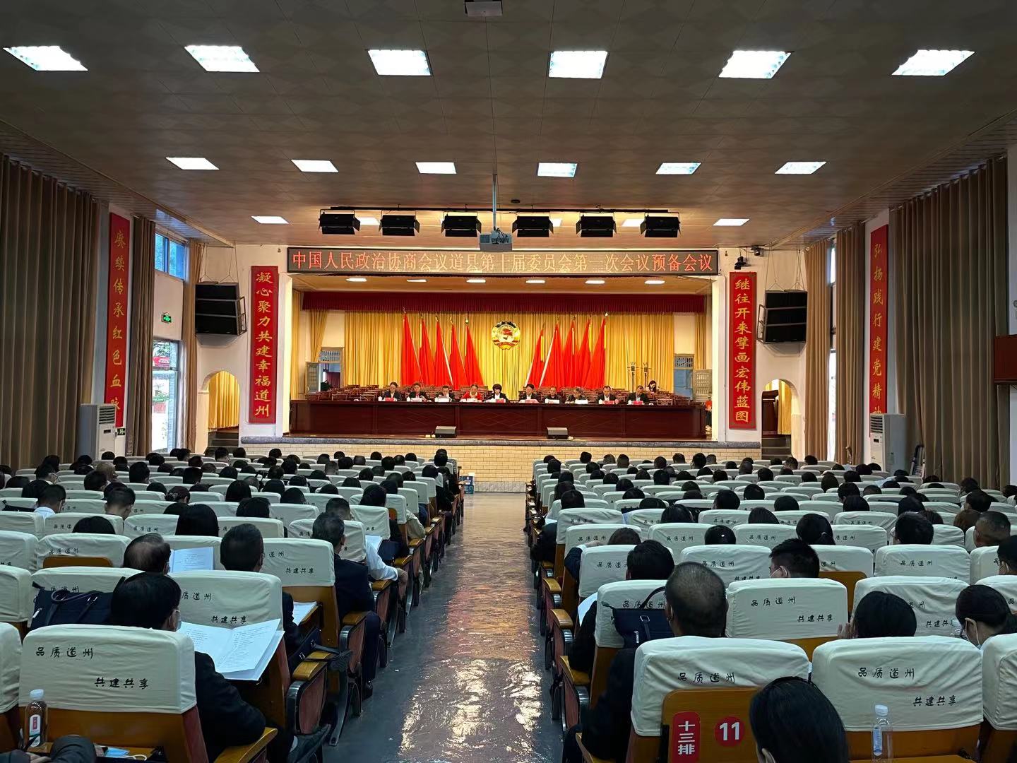 10月19日下午,政协道县第十届委员会第一次会议预备会议在县政府礼堂举行。蒋燕飞、刘庚旺、刘忠华、赵明扬、丁建华、毛长江、黄金翠、陈林静、朱渝娟、何江等领导在主席台就坐。