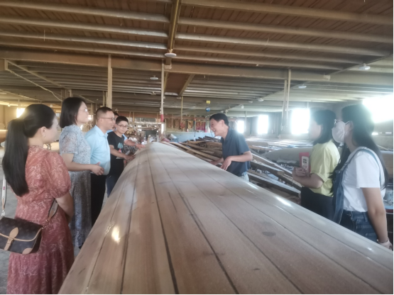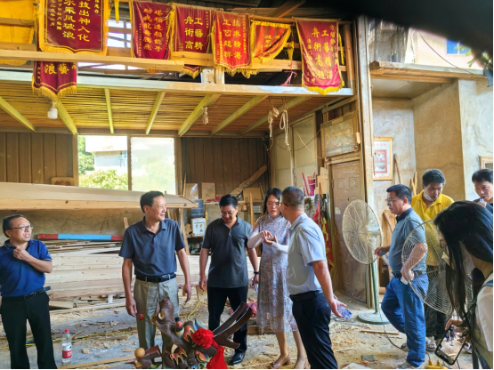 调研组一行在福建闽候县政协副主席林岩峰和何家科主任的陪同下,听取了闽候县南通镇副书记林杰对福州进一步保护好传承好传统龙舟文化,以及大力发展龙舟体育赛事、龙舟休闲旅游等情况介绍,并到福建有名的“龙舟村”--南通镇方庄村,实地察看方庄龙舟制造厂,与方家龙舟世家第三代传承人方绍晃亲切交谈,详细了解福州传统龙舟制作工艺、变迁历程和发展现状,以及销售运行模式。