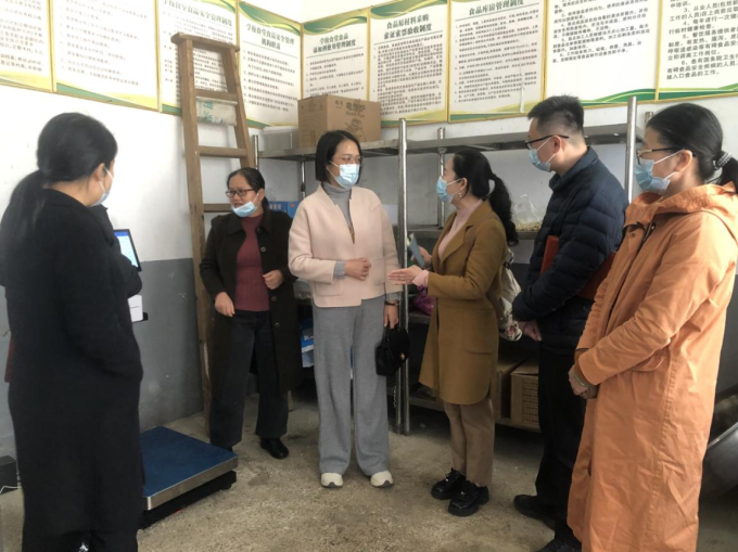 调研组先后走进两所学校食堂,重点查看食材储存环境、加工操作流程、餐具消毒记录及陪餐台账等关键环节,详细询问食材采购渠道、菜品每日搭配、成本管控及师生用餐反馈等情况,深入了解乡村校园在校园餐供应、食品安全监管等方面的做法与难点。调研过程中,朱渝娟与在校师生亲切交流,倾听学生对饭菜口味、种类的意见建议,亲身体验校园餐质量,直观掌握师生用餐体验。