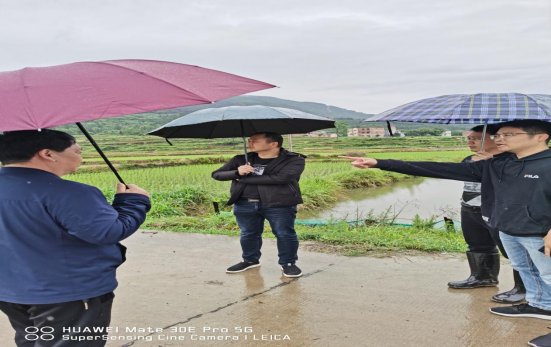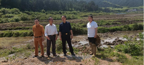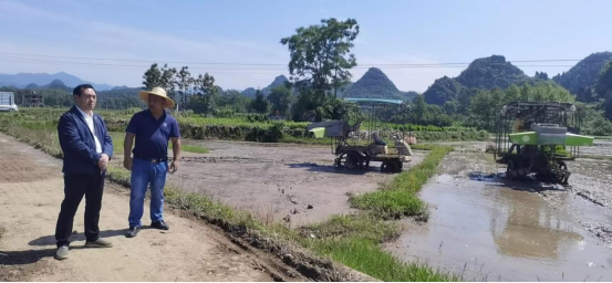 图为5月4日,县政协委员、县农业农村局干部李跃华到横岭瑶族乡浪石村督查早稻移栽和抛荒治理工作。