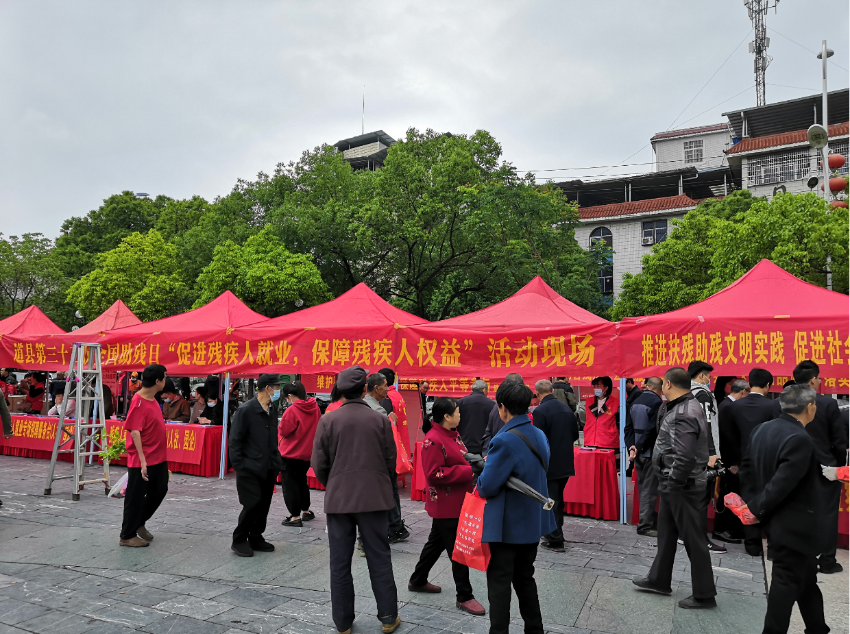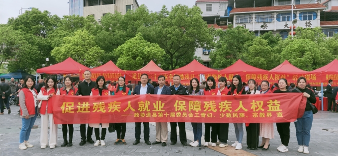 2022年5月15日是第三十二次全国助残日。为深入贯彻习近平新时代中国特色社会主义思想,弘扬社会主义核心价值观,着力保障和改善残疾人民生,更好维护残疾人合法权益,营造关心关爱残疾人的浓厚社会氛围,5月16日,道县政协社民委组织来自工青妇、少数民族、宗教界的18名政协委员会同道县残联等部门在我县敦颐广场开展“促进残疾人就业,保障残疾人权益”主题助残日活动。