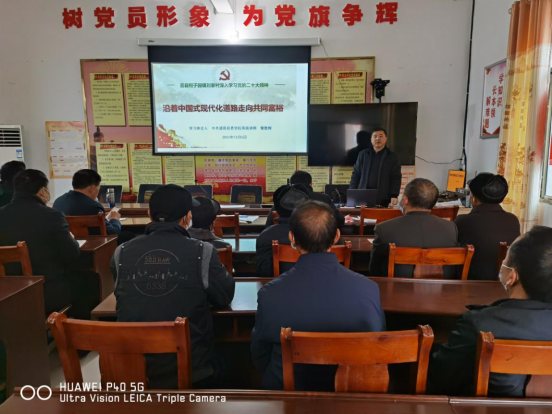 党的二十大召开后,刘家村党支部多措并举、多管齐下,深入宣传学习党的二十大精神。一是集中学习“宣”。刘家村党支部先后两次召开专题会议,研究安排布置宣传学习党的二十大精神;召开两次党员大会集中学习宣讲,包括“二十大召开的重大意义”、“党的二十大的主题”、“党的二十大的主要成果”、“党的二十大精神的丰富内涵”、“过去5年工作和新时代10年伟大变革”、“中国式现代化是实现中华民族伟大复兴的光明大道”等内容。二是版面流动“宣”。刘家村居住分散,自然村较多,刘家村党支部从广告公司制作了4套党的二十大精神的流动宣传版面,分别放在人口相对较为集中的刘家、石塘寺、刘家洞、殿子冲等4个自然村,方便党员、群众就进学习。三是田间地头“宣”。刘家村印制了1000份精美的党的二十大精神宣传单,村支两委、工作队利用空闲时间,深入田间地头,深入农户家中,分发宣传资料,宣讲党的二十大精神。四是“小喇叭”广播“宣”。刘家村购买了4个“小喇叭”,录制了党的二十大精神宣讲的音频,结合“森林防火”“预防小火亡人和一氧化碳中毒”等绕村进组进行宣传。