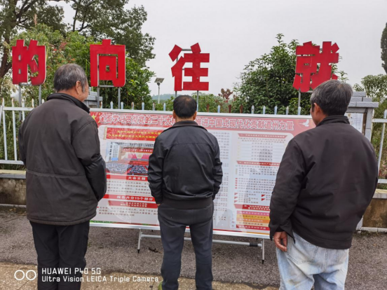 图为刘家村部分党员、群众在阅览党的二十大精神宣传版面
