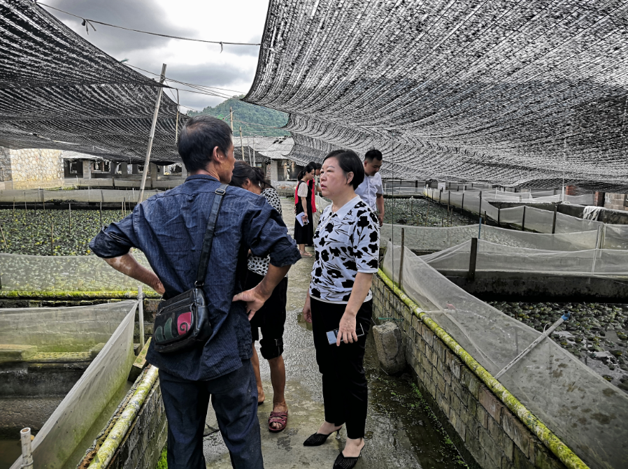 2023年7月3日,道县政协副主席、道县残联副理事长黄芬芳率队深入道县乐福堂镇乐福堂村武昌盛牛蛙养殖场,帮助他们发展牛蛙养殖业。