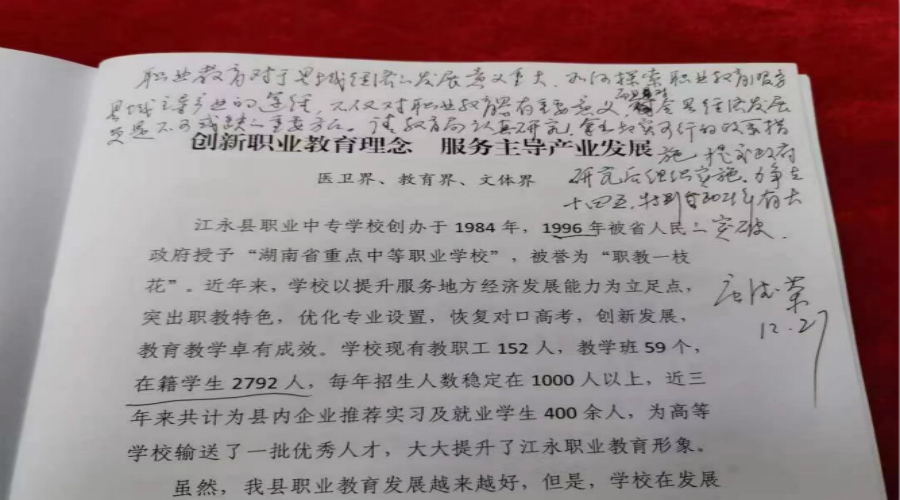 医卫界、教育界、文体界委员在“创新职业教育理念 服务主导产业发展” 中提出加快发展现代职业教育,培养高素质劳动者和技术技能人才的建议。唐德荣批示“职业教育对于县域经济发展意义重大,如何探索职业教育服务县域主导产业的途径,不仅对职业教育具有重要意义,而且对全县经济发展更是不可或缺的重要方面。请教育局认真研究,拿出切实可行的政策措施,提交政府研究后组织实施,力争在“十四五”,特别2021年有大的突破”。