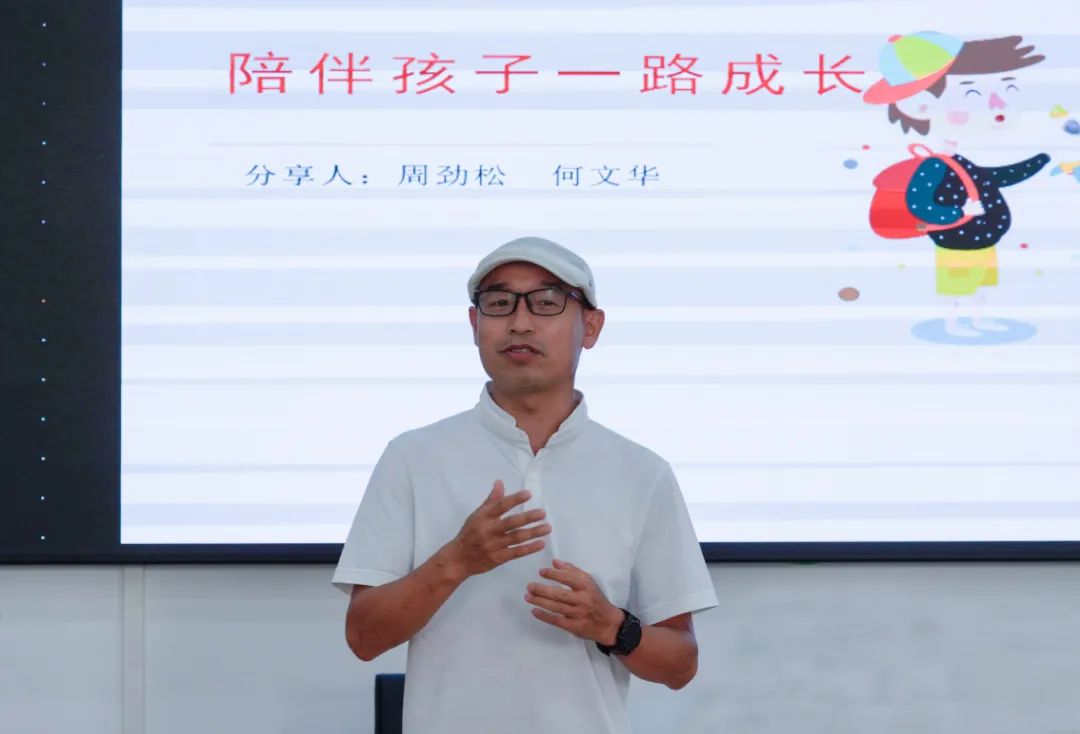 此次讲座,特别邀请了曾任职业中专校长的周劲松老师,为大家分享他在陪伴孩子成长道路上的故事。周劲松老师结合自身经验,用生动诙谐的语言讲述了他在陪伴孩子一路成长过程中的酸甜苦辣,强调了父母在孩子成长过程中的重要性。