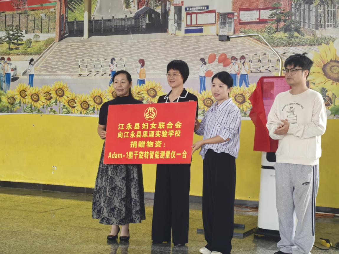 本次“青竹行动”由江永县妇联牵头,联合该县政协妇女界、卫健局、思源实验学校共同发起,现场正式发布《江永县青少年脊柱健康“青竹行动”三年方案》,以“政府主导、部门协作、学校参与、家庭关注”的联动模式,为瑶乡少年儿童的脊柱健康保驾护航。县妇联积极对接公益资源,成功争取到价值36万元的脊柱智能测量仪并现场捐赠,为后续精准筛查提供了关键科技支撑。县政协妇女界立足职能优势,深入开展专题调研、精准建言资政,推动爱心资源向青少年健康领域倾斜。县卫健局将健康预防关口前移,通过现场宣教、示范教学等方式,向学校、家庭和学生普及脊柱健康知识,强化早期干预意识。