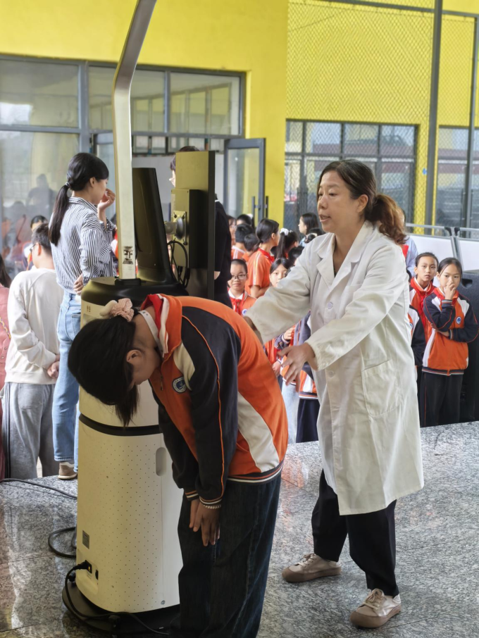 “我们学校的生源大多来自周边瑶乡,很多孩子从未做过专业的脊柱健康检测,‘青竹行动’真是送到心坎上的好项目!”该校校医老师感慨道。活动当天,首批脊柱健康检测工作同步开展,在卫健部门专业指导下,保健老师有序为学生进行智能测量,逐一记录信息、建立健康档案;针对部分体态疑似有问题的学生,工作人员现场进行了一对一的体态纠正指导,并叮嘱后续复查注意事项,用专业与耐心为孩子们撑起“安全伞”。
